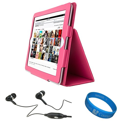 Magenta Executive Leather Portfolio Case with Fold to Stand Feature for Apple iPad 2 Tablet (16GB, 32GB, 64GB) + Black Handsfree Headphones with Mic + INCLUDES!!! SumacLife TM Wisdom Courage Wristband Review